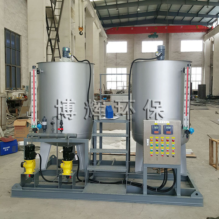 加藥裝置三種型號,都有三大部分組成:1. 攪拌機(jī) 2. 溶液槽 3. 計(jì)量裝置及投加設(shè)置。