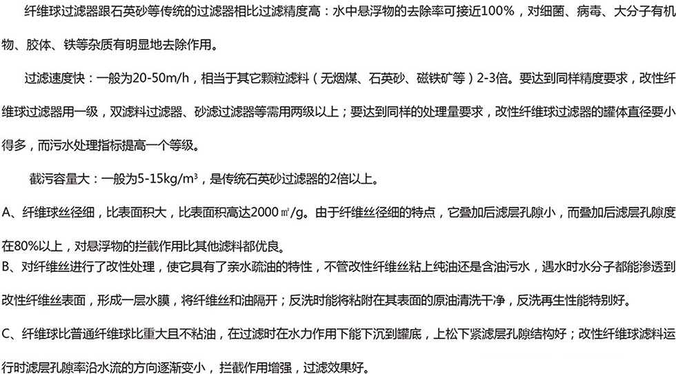改性纖維球過濾器的性能指標與其它過濾器相比改性纖維球過濾器有以下優(yōu)點
